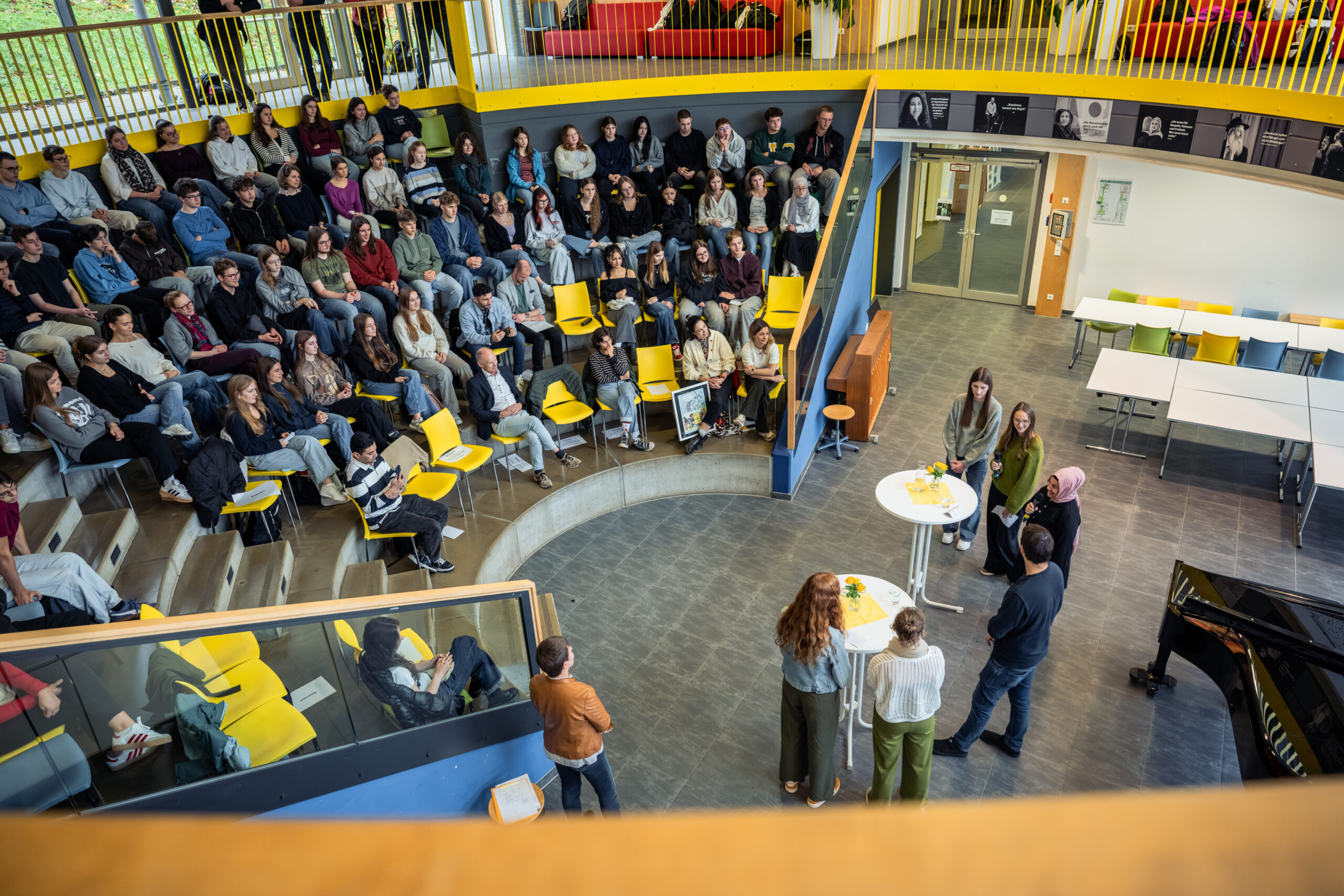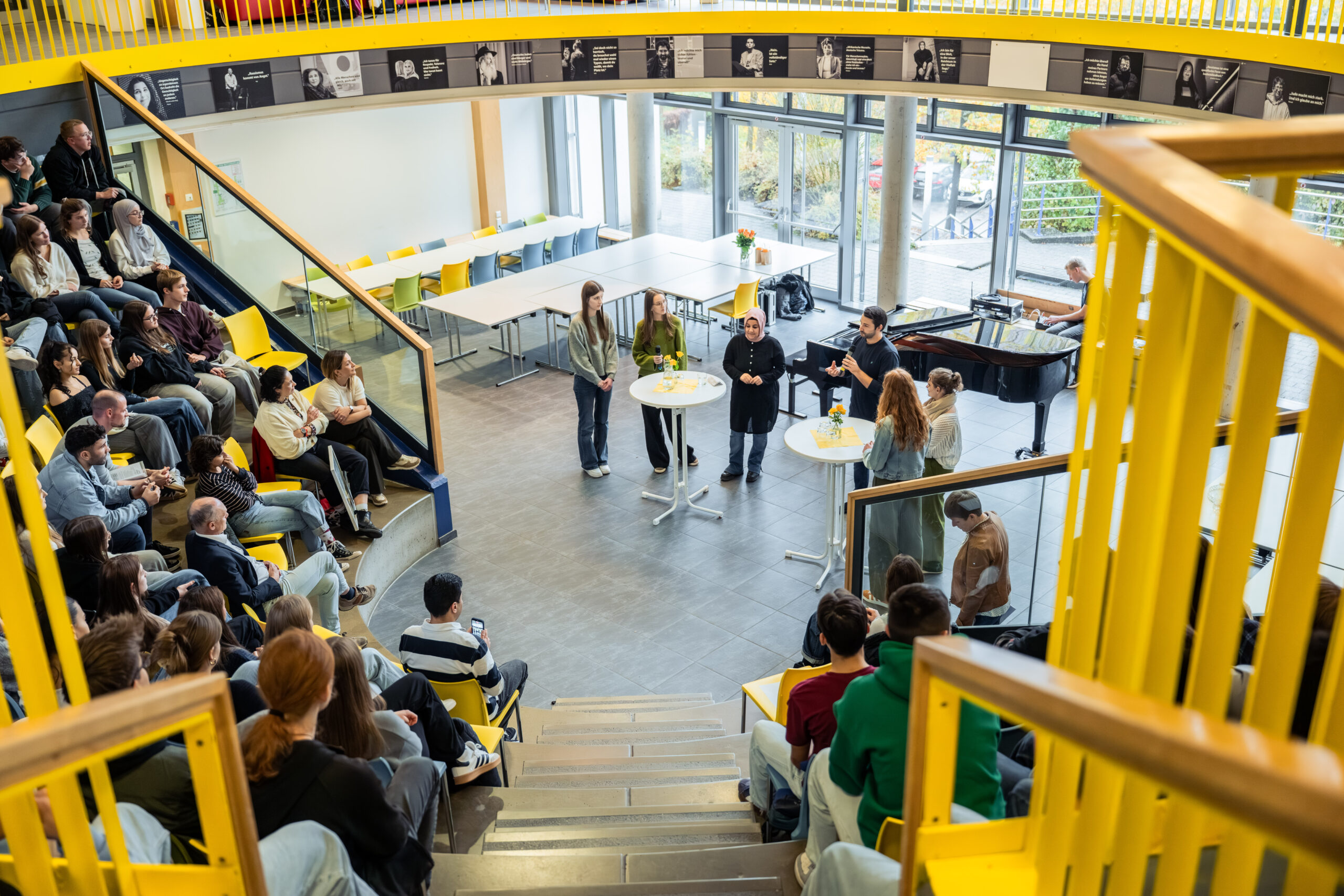 Bei der offiziellen Vernissage um 10:15 Uhr begrüßte Studiendirektorin Katja Strümpfel die Anwesenden, stellte das Thema der Ausstellung vor und hob die Bedeutung von Sichtbarkeit und Dialog im Umgang mit Diskriminierung hervor. Anschließend richtete Oberstudiendirektor Hans-Ulrich Wörner das Wort an die Gäste und betonte den Stellenwert von Menschenrechten und Vielfalt für das schulische Miteinander.