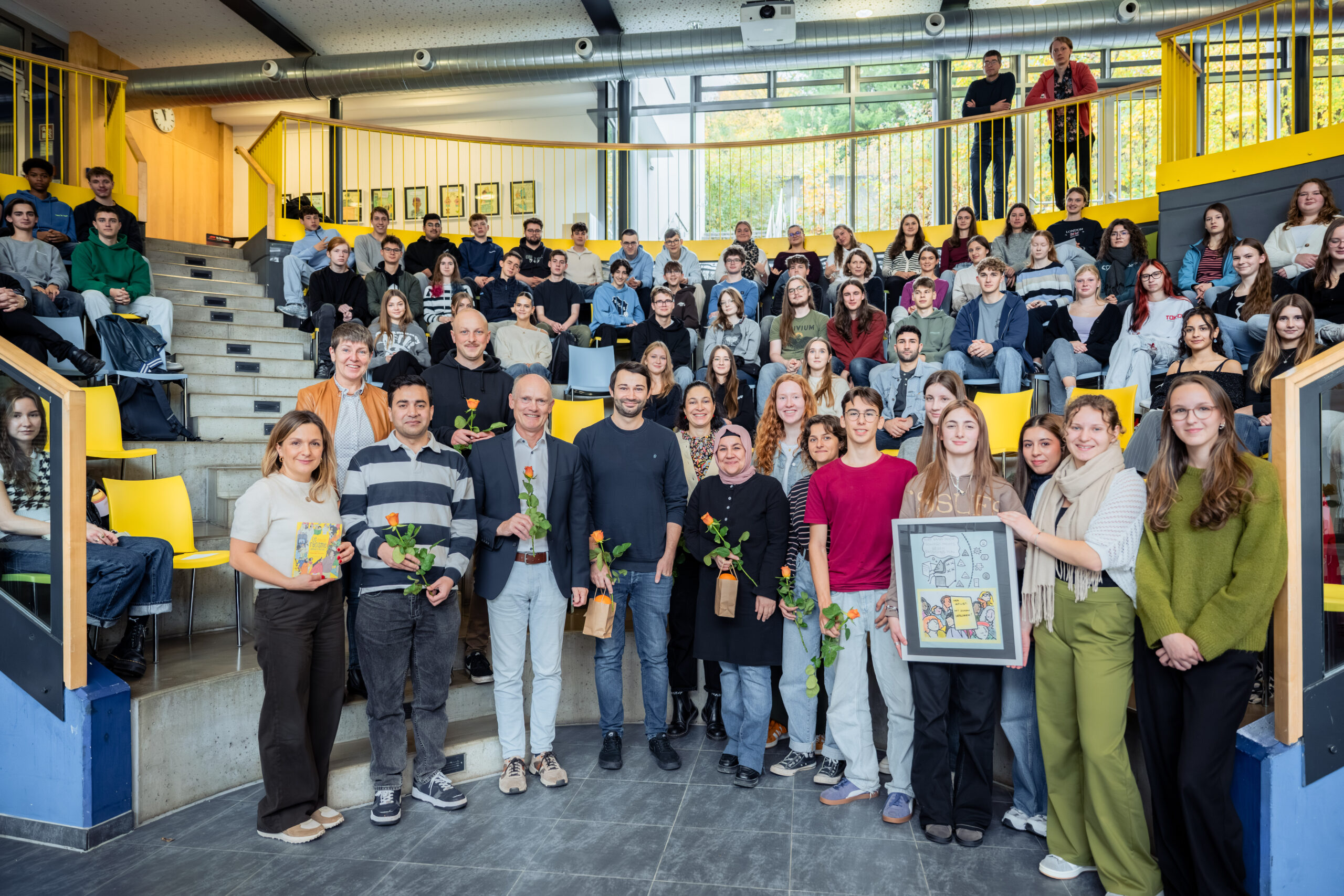 Im weiteren Verlauf berichteten zwei der porträtierten Personen, Dario Thiem und Mehtap Derin, über ihre persönlichen Erfahrungen. Ihre Aussagen eröffneten einen authentischen Zugang zu Diskriminierungserfahrungen und gaben wichtige Impulse für die politische und demokratische Bildung an der Schule. Im Anschluss beantworteten sie Fragen der Schülerinnen und Schüler und kamen mit ihnen in ein offenes Gespräch über Alltagserfahrungen, Vorurteile und Zivilcourage.